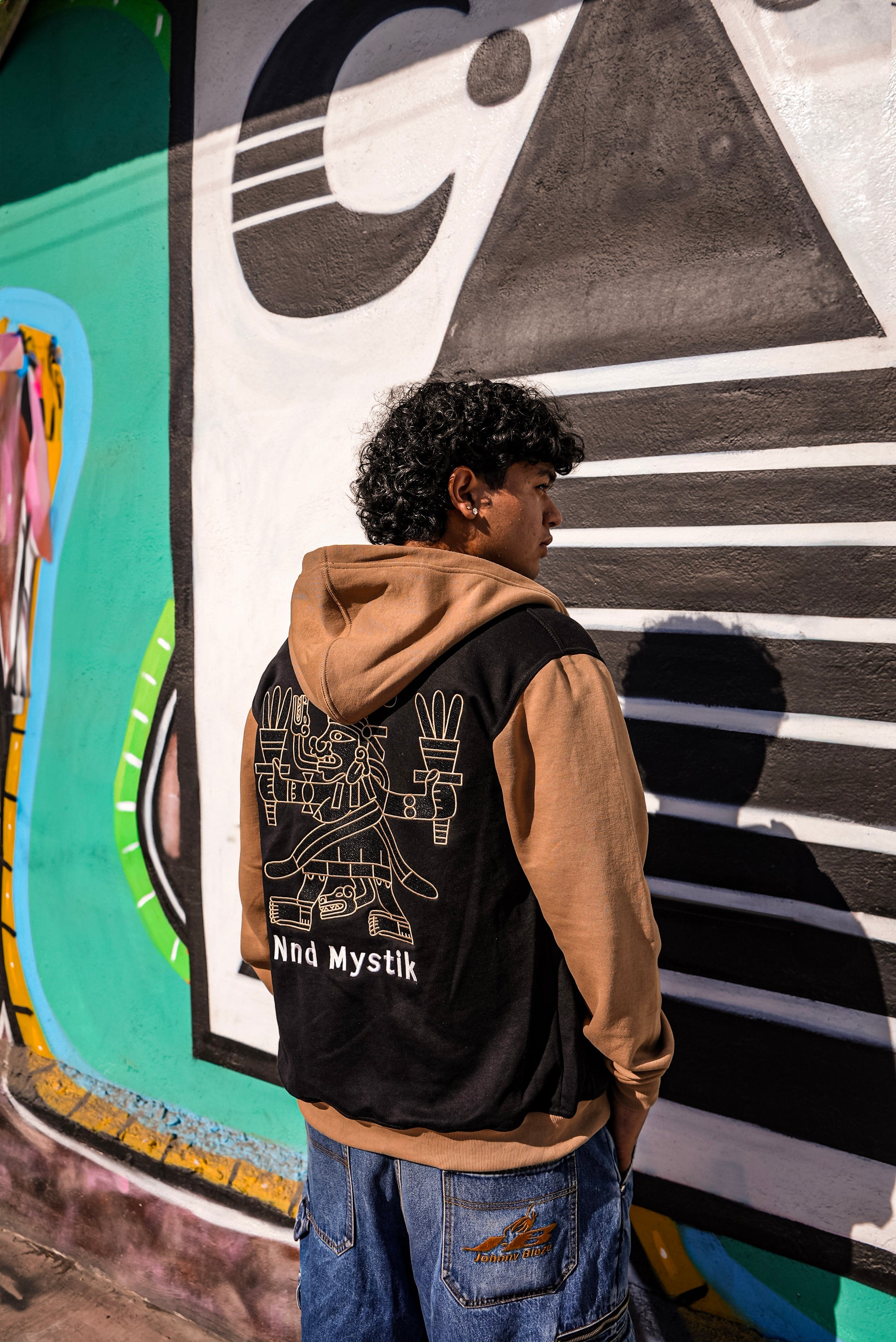 This NND Letterman Hoodie combines style and comfort with its brown and black cotton design. Stay fashionable and cozy in this zip up hoodie, perfect for any casual occasion.